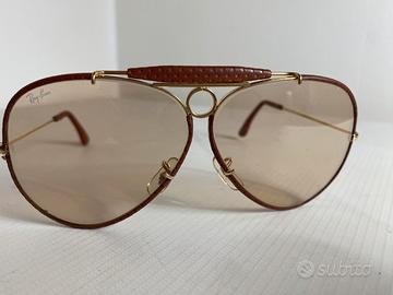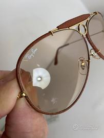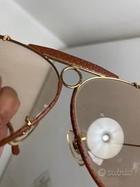 Bellissimi occhiali da sole Ray-Ban Aviator vintage, anni 60/70 con montatura in pelle marrone e dettagli in oro. Sono in perfette condizioni, perfetti per un look retrò.