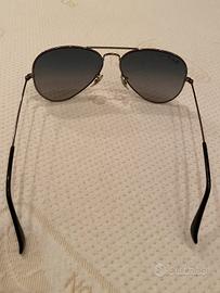 Vendo occhiali da sole RAY BAN uomo modello AVIATOR con lenti polarizzate, sfumate blu, calibro 58, con montatura color canna di fucile mai usati.