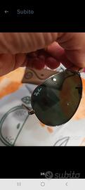 Vendo occhiali Ray-Ban aviatore in buone condizione con qualche graffietto di usura. Larghezza 13 cm, lunghezza aste 13 cm, larghezza naselli 14 mm, larghezza lente 5,5 cm