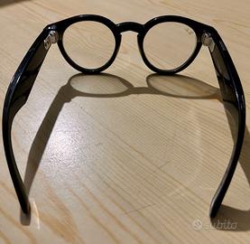 Occhiali Ray-Ban Stories modello Round, sviluppati in collaborazione con Facebook/Meta. Con lenti correttive per vista. Correzione per visione da lontano per occhio destro -2,25 e occhio sinistro -1,50. Lenti Transition, fotosensibili che diventano più scure in esposizione alla luce solare. Occhiali multifunzione che tramite l’appropriata applicazione di Meta (sia per IOS che per Android) possono collegarsi allo smartphone e di conseguenza possono scattare foto (che vedrete sullo smartphone collegato bluetooth), effettuare brevi riprese video (max 60 secondi), ascoltare la musica sul del vostro telefono (tramite altoparlanti incorporati nelle aste trasmettono per induzione ossea il suono al orecchio), ricevere una telefonata ed effettuare una normale conversazione telefonica, queste ed altre nuove funzioni possono essere comandate anche da appositi comandi vocali. Nella originale confezione in cartoncino rigida sono inoltre inclusi: custodia rigida con batteria per ulteriore ricarica, guida di riferimento, cavo con connettori USB type C, sacchetto custodia in microfibra, panno per pulizia lenti. Li ho acquistati a gennaio del 2022 e li ho pagati 600 euro.