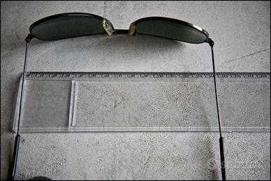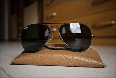 Occhiali Ray-Ban da Uomo tipo Aviator classici... Lenti colore verde molto scuro, montatura in metallo con terminali delle aste in acetato. La distanza tra le cerniere delle aste è di 135mm. In buone condizioni, senza graffi sulle lenti, pur ovviamente mostrando normali segni d'uso. Inclusa custodia originale. Vendita tra Privati, nessuna garanzia ed assistenza post vendita, non si accettano resi, modalità visti e piaciuti.