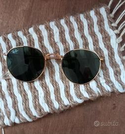 Classici occhiali Ray-Ban montatura in metallo dorato lenti verdi, utilizzati un paio di volte come nuovi