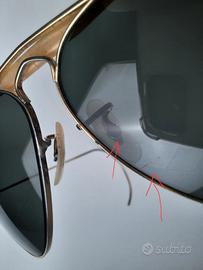 Ray-Ban modello Outdoorsman misura 58-14, made in USA da Bausch & Lomb. Il classico Aviator con l'aggiunta del para-sudore che gli dona quel tocco tecnico e sportivo, che richiama appunto il nome del modello.