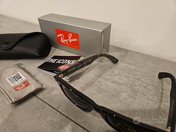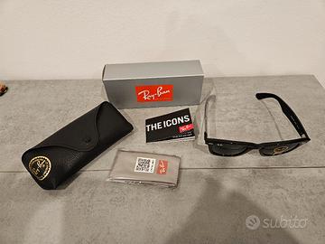 Vendo occhiali ray ban nuovi.. modello wayfarer montatura nero lucida e lente verde,per cambio modello. Per qualsiasi info chiedete pure.