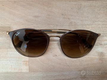 Vendo Ray‑Ban Aviator originali, montatura oro e lenti marrone sfumato. Occhiali usati ma in buone condizioni generali con leggera usura sulla montatura senza segni evidenti sulle lenti.