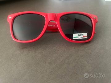 occhiali rossi con lente polarizzata come da etichetta. nuovi mai indossati