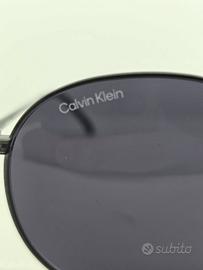 Occhiali da sole Calvin Klein, design elegante e sofisticato. L'occhiale è completamente nuovo, non è mai stato indossato. La montatura in titanio giapponese è talmente leggera da far sembrare di non indossare occhiali, nessun peso sul naso né sulle orecchie. Monta le sue lenti originali di colore grigio-blu.