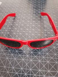 Occhiali da sole con montatura rossa. Lenti scure. Brand Fiat