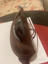 Sono occhiali nuovi anche se senza etichetta,hanno sia la custodia rigida che la morbida,hanno lenti polarizzate che schermano gli occhi in modo unico,hanno lenti rosa ma sono unisex anzi piu da uomo,sono fatti a maschera avvolgente quindi oltre ad un uso normale in città e al mare sono perfetti sulle due ruote o in barca,sono talmente leggeri che ci si scorda di averli e questa è una caratteristica di alcune marche in primis Maui Jim ma anche i Mykita.