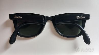 Occhiali da sole pieghevoli Ray-Ban Wayfarer Folding vintage originali, anni 80, montatura colore nero opaco, sulla lente è presente l’incisione BL, condizioni come da foto