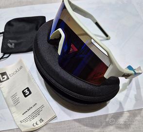 Marca: Bollé Lente: specchiata , monopezzo avvolgente Montatura: bianca Categoria filtro: 3 (sole intenso / sport) Condizioni: nuovi Includono: Custodia rigida originale Bollé Sacchetto in microfibra Documentazione originale Perfetti per ciclismo, running, sport all'aperto.