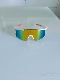 Nuovi occhiali da sole Sportivi marca Giant, colore Bianco (Struttura) e Rosso (Stanghette). La lente è dotata di protezione UV400 categoria 3 (Protezione raggi UV-A e UV-B), Raccomandato per praticare sport all’aperto con luce solare Intensa poiché in grado di assorbire oltre il 90% della luce stessa. Gli occhiali sono completamente Nuovi!