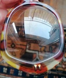 Occhiali super Vintage, anni '60, in ottimo stato. Lenti non graduate, fumé e degradé. Ottime come anti-vento. Marca J Jourdan Paris. In plastica trasparente e colorata, forse acetato. Toni dominanti giallo e marrone. Dimensioni riportate nelle foto che fanno parte integrante della descrizione.