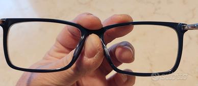Occhiali da vista con lenti anti luce blu. Montatura perfetta come nuova, blu, aste in metallo e struttura in resina. Lenti anti luce blu e leggermente correttive ma sostituibili in base alle esigenze visive. Custodia rigida.
