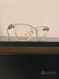Occhiali neri chrome hearts senza difetti stile diverso con motatura un po piu tonda senza difetti con dettagli in argento e lenti anti luce blu con possibilità di cambiare le lenti con le proprie da vista in qualsiasi ottica