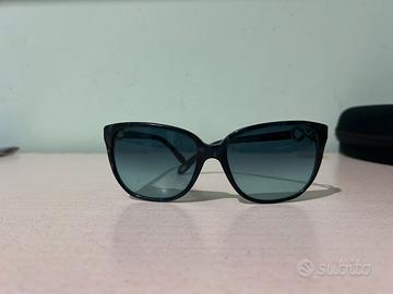 occhiali da sole originali Tiffany & Co. con: •montatura nera in acetato •forma cat-eye / squadrata •dettaglio metallico dorato sulle aste (tipico Tiffany) •lenti scure (originali)