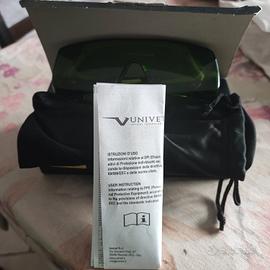 vendo per inutilizzo questi occhiali univet. praticamente nuovi, mai usati. si accettano offerte. ecco le caratteristiche: Occhiali protettivi per macchine laser Fibra e CO2 Occhiali protettivi per macchine con sorgenti Laser Fibra e CO2 Gli occhiali di protezione per sorgenti Laser Co2 sono stati studiati per la sicurezza degli operatori che utilizzano macchine laser con classe di sicurezza 4. Questi occhiali, prodotti dal marchio Univet, montano filtri protettivi che rispondono alle esigenze di questa tipologia di sorgenti Laser. Sono un dispositivo per la protezione laser dalle caratteristiche performanti: - completamente sovrapponibile a tutti i tipi di occhiali correttivi - ampiezza delle lenti, che garantisce una protezione ottimale oltre ad un esteso campo visivo - aste regolabili e dotate di tecnologia Softpad: un accorgimento strutturale che permette la perfetta regolazione degli occhiali rispetto alle caratteristiche individuali dell'utilizzatore - montatura ultraleggera (42 g) I filtri ad assorbimento sono progettati per bloccare la luce di una porzione di spettro definita: quando colpiti dal fascio laser essi assorbono la radiazione pericolosa trasformandola in calore. La loro leggerezza è particolarmente apprezzata durante gli utilizzi prolungati. Caratteristiche tecniche Colore montatura: Bianco Materiale montatura: Nylon Campo visivo: >40 ° Peso: 42,3 g Misure: 160 x 153 x 2,1 mm Colore lente: Verde Materiale lente: Policarbonato VLT lente: 42% Gli occhiali sono provvisti di dichiarazione di conformità e sono conforme alle prescrizioni della Direttiva 89/686/CEE, così come modificate dalle direttive 93/68/CEE,93/95/CEE e 96/58/CE, relativa ai dispositivi di protezione individuale, ed ai D.L. italiani n. 475 del 04/12/1992 e n.10 del 02/01/1997, che ne recepiscono i contenuti, per DPI appartenenti alla categoria: II; è identico al dispositivo di protezione individuale oggetto degli Attestati di Certificazione CE: C1097.4U.