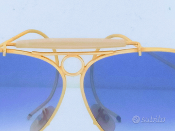 Occhiali vintage modello aviatore con cerchietto in metallo dorato e stanghette a riccio