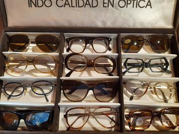 Lotto di 24 montature 8 nuove, le altre usate un paio da risaldare. Occhiali da sole e da vista anni 60/70/80/90/00.