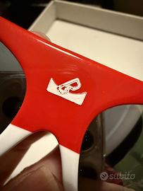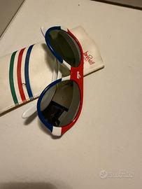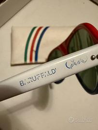 Il modello presenta una montatura avvolgente con una distintiva colorazione tricolore (blu, bianco e rosso) che richiama i colori nazionali. Periodo: Risalgono tipicamente agli anni '80, un'epoca in cui Baruffaldi produceva diversi modelli sportivi bicolore o multicolore con lenti spesso specchiate. Caratteristiche: La montatura è realizzata in materiale plastico resistente, con il logo del marchio (la caratteristica "B" stilizzata o il nome Baruffaldi) spesso visibile sul ponte o sulle aste.