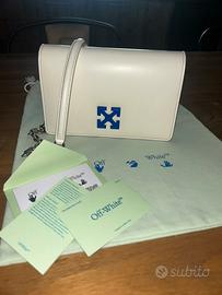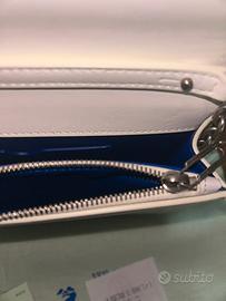 Borsa bianca off white a tracolla, con logo blu e catena color argento. Indossata poche volte, con cartellini e dust bag. Acquistata alla Boutique di Adani a Modena, ho ancora lo scontrino.
