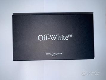 Scatola completa di: Pezzetta originale della casa Off-White, certificato di autenticità e occhiali con protezione per le astine.
