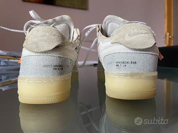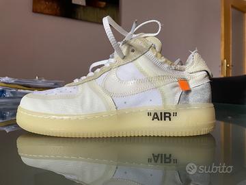 Magnifiche Off White Nike Air Force 1 Low "The Ten" ideate dal genio Virgil Abloh. Oggetto di culto, pezzo da collezione. Essendo state prodotte in edizione limitata, sono oggi rarissime e pressoché introvabili in queste condizioni. La loro confezione non è più in mio possesso. Le scarpe sono nuove, mai calzate. Numero 40, calza come un 41. In vendita sul web a cifre folli. Valuto offerte commisurate alla rarità dell'oggetto.
