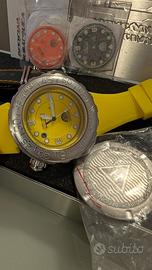 Offro originale corredo super full set con due cinturini tre quadranti e due fondelli , diver professionale 1100 mt officina subaquea argonaut automatico swiss made sellita sw 200 orologio con valvola elio cassa acciaio da 45/46 mm dal vivo orologio spettacolare e raro