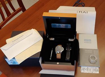 completo di tutto il suo corredo, service effettutato a gennaio 2025 , (non è stato più indossato) garanzia Panerai fino a gennaio 2027 (documentata con scontrino).