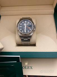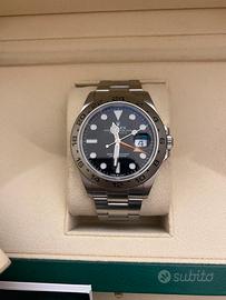 Rolex Explorer 2 nuova referenza 226570. Bellissimo come nuovo , quadrante nero, cassa in acciaio 42mm. Condizioni ottime. Orologio completo di tutto il corredo scatola e garanzia del 2022. Quindi ancora in garanzia pee altri 2 anni. L’orologio non ha bisogno di nessun intervento di ripristino e/o riparazione. Orologio completamente coevo. Valuto permute esclusivamente con altri orologi Rolex.