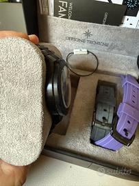 Officine Tecniche AQUAS, EDIZIONE LIMITATA SIERRA, Calibro MIYOTA 9039 PREMIUM, Quadrante stealth grigio opaco, Cassa in acciaio inossidabile 316L da 40 mm, rivestimento ADLC nero, Inserto della lunetta in acciaio inossidabile, rivestimento ADLC nero, Superluminova Nero BGW9, 2 Cinturini in gomma HNBR uno nero e viola entrambi integrati.