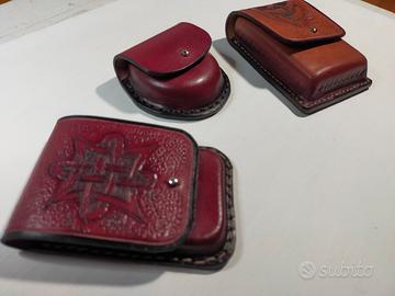 vari oggetti in cuoio di diversi colori e con vari tipi di chiusure, rigorosamente creati a mano, eseguo/creo oggetti anche su proprio disegno o necessità. ottima la manifattura e durevole nel tempo,.