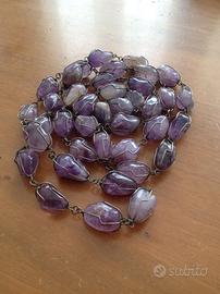 Vendo preziosi oggetti in pietra Ametista: collana composta da numero 39 pietre vere, lunghezza totale più di 1 metro e nr. 2 posacenere (dimensioni circa 13x9 cm, spessore 2 cm). Ottime condizioni