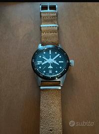 L'M-52B AF è presentato con un cinturino RAF in nylon nero stile militare.
