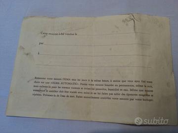 Orologio Olma originale d'epoca, completo di tutte le parti. Non marciante. Corredato di certificato di garanzia Olma.