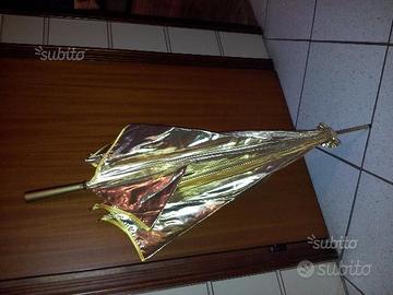 Ombrello parasole vintage in tessuto color oro lucido. Mai utilizzato. In perfette condizioni. Oggetto ormai introvabile. Adatto anche come accessorio di abiti d'epoca.