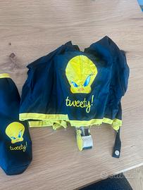 Edizione looney toones, impugnatura gioiello smaltata con il volto del canarino Titti. Tessuto tecnico colore nero, con dettagli e bordature gialle che richiamano il personaggio, impugnatura con pulsante automatico più custodia originale.
