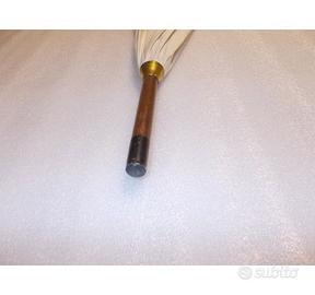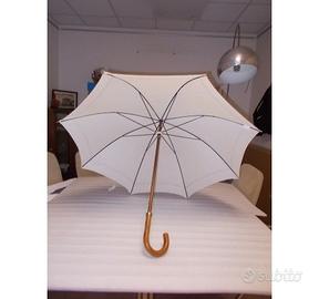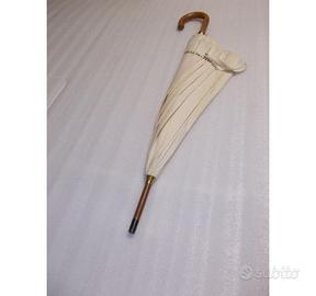 OMBRELLO UNISEX TRUSSARDI "ORIGINALE" "VINTAGE" Ombrello in tessuto trattato per respingere facilmente l'acqua e impedire allo sporco di attaccarsi Impugnatura ad anello aperto in acero tinto con logo TRUSSARDI Ombrello elegante realizzato in tessuto color panna con stampa "TRUSSARDI" marrone Altezza cm 95 circa Diametro (ombrello aperto) 106 cm circa, dispone di n.8 stecche in metallo di cm 63 circa per sostenere la cupola dell'ombrello Peso Gr.600 circa Apertura manuale, il cursore dell'ombrello deve essere spinto manualmente verso l'alto lungo la guida fino al blocco LA COPPA DELLA PUNTA DELL'OMBRELLO LIEVENTE RIGATA Prodotto mai usato Prodotto ORIGINALE TRUSSARDI sfuso