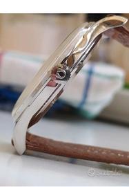 Omega Ref 2890 Calibro 267 revisionato Diametro 36 escluso corona Corona originale dell'epoca con logo stretto Fibbia originale da 14mm Set sfere originali Quadrante originale Lancetta secondi originale colore bluette Viti fermacassa originali Cinturino vintage lucertola Oggetto originale facente parte della mia collezione privata No tuttosubito Pagamento bonifico bancario Spedizione a carico dell'acquirente È gradito il ritiro a mano Per info video foto contattatemi su wz 3281042821