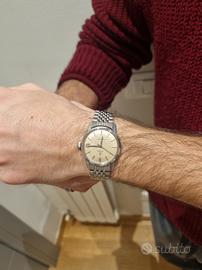 Omega Seamaster Vintage referenza 136.005 , calibro di manifattura 610 con regolazione a collo di cigno funzionante in ogni sua parte. Diametro 34,5 ca. esclusa corona. Viene venduto con bellissimo bracciale chicchi di riso (solido e teso in quanto rimagliato, lucidato e risatinato da tecnico orologiaio con sostituzione vecchi pin con pin di facile regolazione). Richiesta 990 euro trattabili Orologio originale e di mia proprietà. Verificate i miei altri orologi in vendita tra cui zenith, longines e Rolex. Non si accettano scambi con orologi cartier, iwc, panerai e baume mercier o altri marchi importanti come tag heuer Orologio solo per la vendita. Preferita consegna a mano zona Bari/Brindisi/Lecce. Spedisco in casi eccezionali previo pagamento tramite bonifico istantaneo.