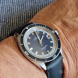 Vendo o scambio. in condizioni museali,raro: OMEGA SEAMASTER 60 BLU DIVER BIG CROWN Ref. ST 166.062 Seriale 31000000 anno 69/70 Sub Skin Diver 60m Movimento automatico ramato calibro Omega 565 Rara versione quadrante al trizio Blue Data scatto rapido a pompa Vetro plastica originale marcato Omeqa al centro e con lente sulla data al 3 Ghiera in bachelite perfetta Cassa in acciaio diametro 37mm Fondello a vite Scatola Omega rossa originale dell'epoca Orologio che nasceva in 2 versioni: con cinturino in pelle oppure con bracciale in acciaio. Cedo o permuto/scambio a: ⁃ Euro 2300 con cinturino cuoio e fibbia Omega originali ⁃ Euro 2800: con bracciale acciaio Omega originale ref.1125 end links 560 + cinturino e fibbia Omega originali Vendo o scambio con altro orologio par pregio e valore Trattabile senza permuta.