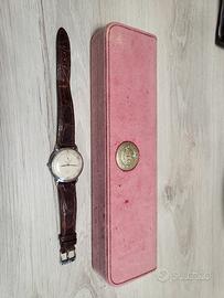 Vendo Omega Bumper referenza 2398 degli anni 1940-1950 in acciaio con quadrante argento bitonale con indici a sfera alternati a numeri arabi. L’orologio é perfettamente funzionante ed é stato completamente revisionato in data 24 ottobre 2025, la garanzia (di 2 anni) é segnata internamente sul fondello. Marca: Omega Modello: Solo tempo Referenza: 2398 Anno: Tra 1940 e 1950 Materiale Lunetta: Acciaio Bracciale: In pelle Materiale Bracciale: Pelle Materiale Fibbia: Acciaio Dimensioni Cassa: 34 mm Materiale Cassa: Acciaio Quadrante: Argento bitonale Vetro: Plexy Indici: A sfera alternati a numeri arabi Calibro: Bumper Movimento: Automatico Corredo: Orologio + scatola originale in camoscio Condizione: Ottima (vista l’età del’orologio). Ottimo investimento No perditempo.