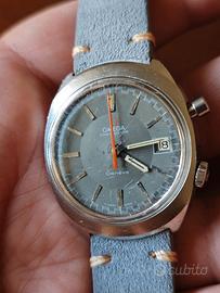 Il movimento carica normalmente, tiene bene il tempo, Il crono, nonostante il pulsante sia un po' duro parte ed azzera. Corona originale, vetro con varie rigature ma originale, vedi il piccolo logo omega che si vede al centro nella macro e per quanto ne so (da non esperto) è tutto coevo. Non conosco la data di ultima revisione. Cinturino generico nuovo ma economico scamosciato.