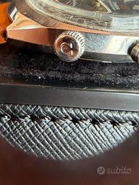 Omega Chronostop vintage grey 146.009 Dial •Quadrante: grigio, in buone condizioni. Leggeri segni di usura visibili solo in alcune condizioni di luce. •Vetro: plexy in perfette condizioni, logato omega. •Cassa: in ottime condizioni, con leggeri segni di usura. •Sfere: molto belle e coerenti con il modello ma non coeve. •Fondello: in eccelenti condizioni e con leggeri segni di usura. •Bracciale: cinturino di pelle marrone nuovo artigianale non logato. •Corona: originale, logata e coeva Omega. •Movimento: manuale, perfettamente funzionante nella parte chrono e anche in quella solo tempo. Orologio stupendo, elegante e versatile Condizioni generali: 8,5/10 Scambio con Rolex, Seamaster e Speedmaster, Jaeger Reverso e Zenith. Grazie Matteo