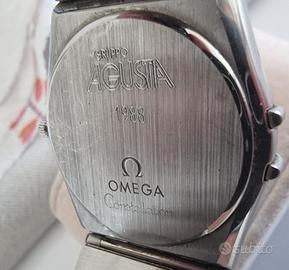 OMEGA Mod. “Constellation GMT ”, anni '80 Diam. 33 mm USATO NO SCATOLA. Cassa in acciaio con fondello a pressione e lunetta con incise le 12 ore in numeri romani. Quadrante nero con indici sferici applicati, datario ad ore 3, minuteria a binario chiuso, radiale serigrafata cosi come sono serigrafate le 24 ore della funzione GMT. Bracciale integrato in acciaio, a maglie, con chiusura a scomparsa. Movimento al quarzo.