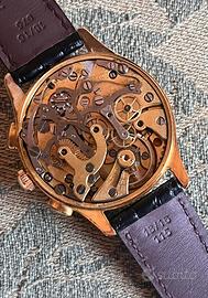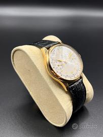 - Modello: Cronografo Omega vintage, produzione fine anni '40 - Cassa: Oro massiccio 18kt, punzonata. Proporzioni eleganti tipiche Omega pre-Speedmaster, 38mm dunque un Jumbo per l’epoca. - Movimento: Cronografico manuale base Tissot, come Omega realizzava in quegli anni '40. Famiglia 27 CHRO - uno dei calibri storici più apprezzati e robusti, base tecnica dei futuri cronografi iconici del marchio - Particolarità: Esempio della collaborazione Omega-Tissot dell'epoca, quando i movimenti venivano condivisi tra le due manifatture - Condizioni: ottime - Destinato a collezionisti, appassionati di cronografi vintage in oro, chi cerca un pezzo importante e non inflazionato Valuto permure anche superiori con : Omega - Rolex - Tudor - Cartier - Zenith - Panerai - Breitling ecc…