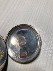 Vendo raro orologio da taschino Omega originale del 1900 in argento 800, in argento placcato oro, perfettamente funzionante, le lancette ricamate vanno da sè per comprendere una lavorazione rara e sofisticata, non sgarra di un secondo la macchina è stata completamente smontata e lavata da un centro specializzato, piccola scalfittura nella parte superiore del quadrante di porcellana, a testimonianza delle guerre vissute