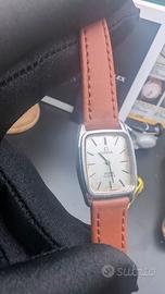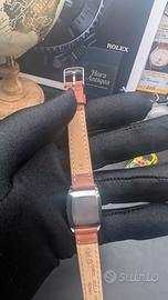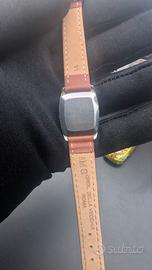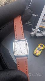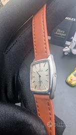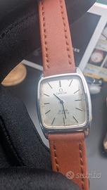Elegante Omega De Ville Quartz vintage da donna con cassa rettangolare in acciaio, design minimal e tipicamente anni ’70/’80. Un modello sobrio e raffinato, ideale come orologio classico vintage da utilizzo quotidiano.