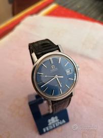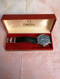 Orologio vintage da uomo, Omega De Ville, automatico, quadrante blu, completo di scatola e due cinturini omega in pelle.