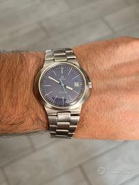 Orologio funzionante, movimento a carica manuale. Cinturino omega originale, e corona logata omega. Vetro originale dell’epoca. Quadrante blu molto raro, pulito e mantenuto originale, lievi segni.
